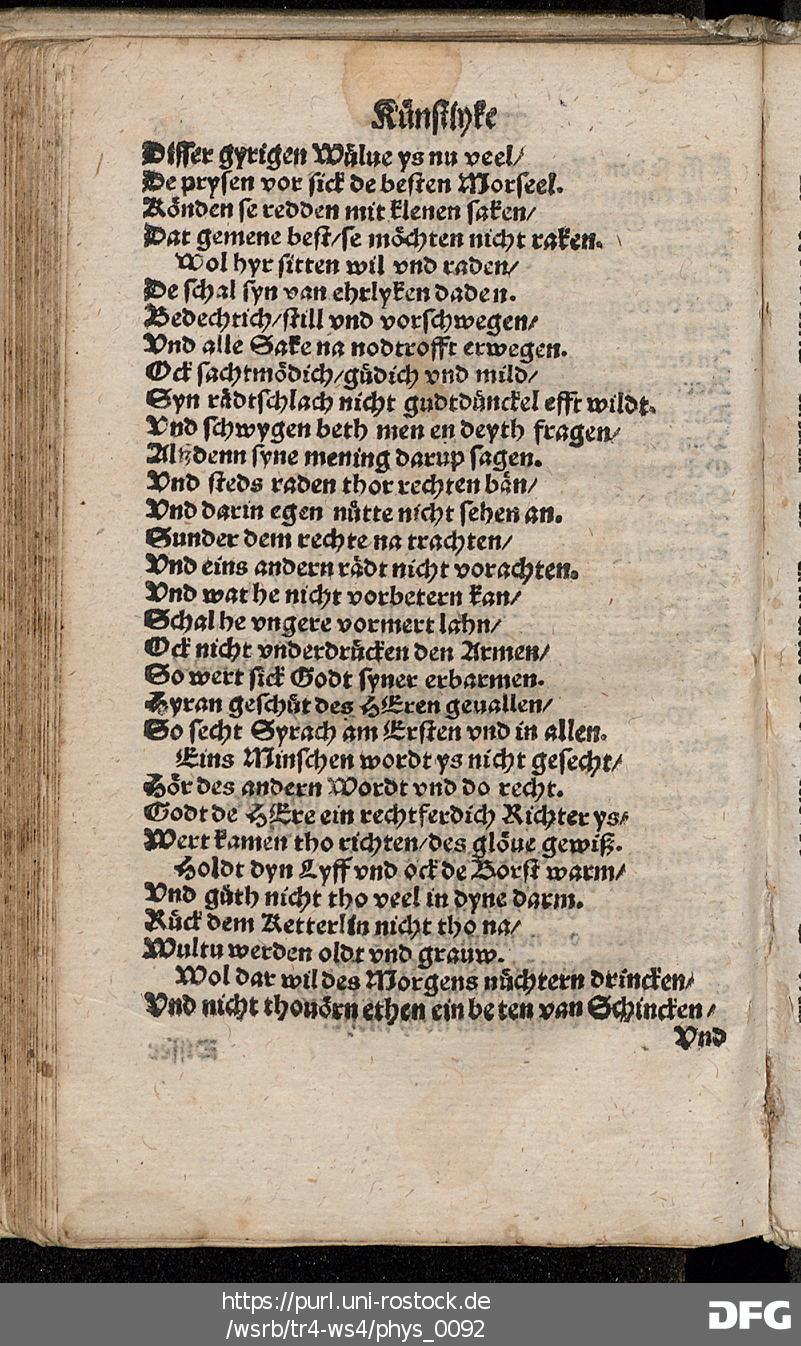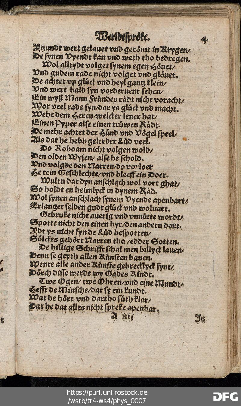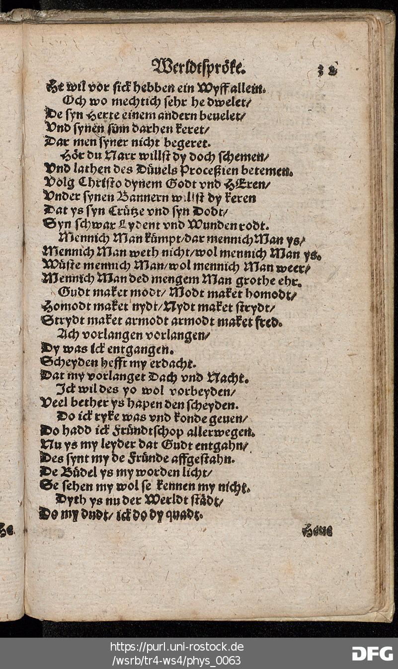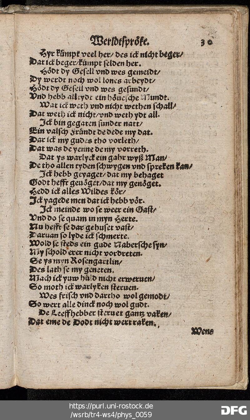Transkription von WS₄: Schöne künstlyke Werldtspröke (VD16 S 3389)