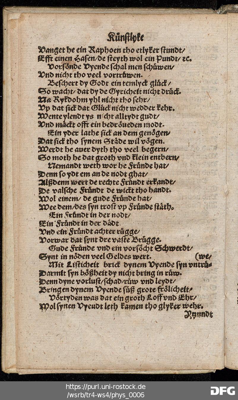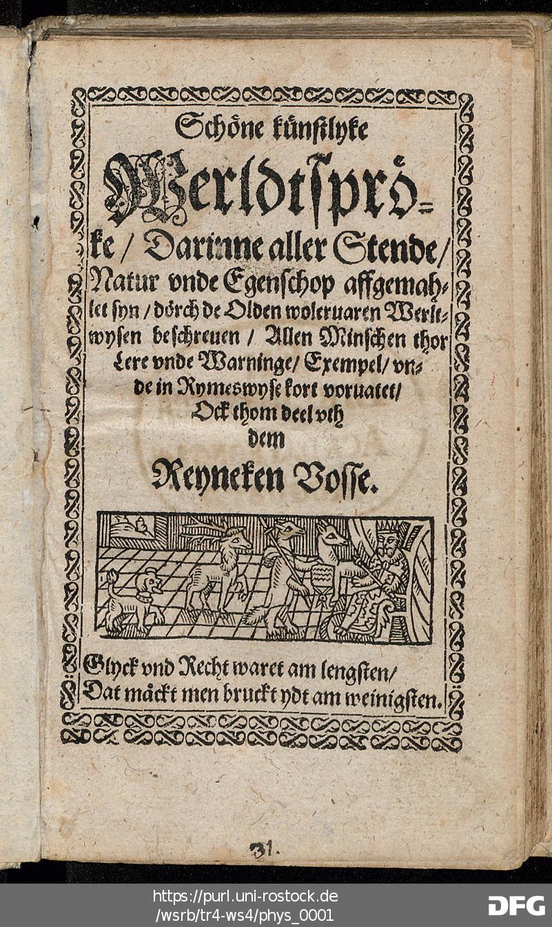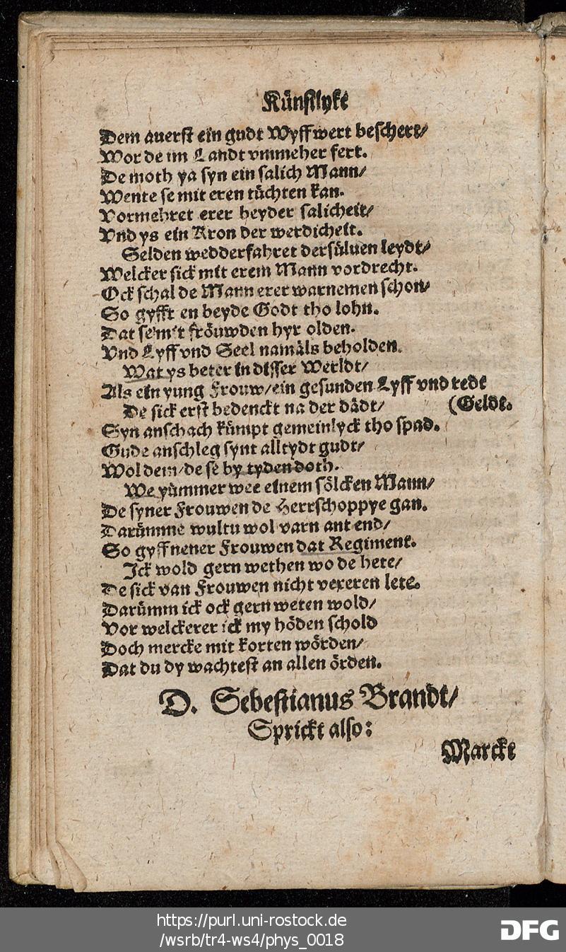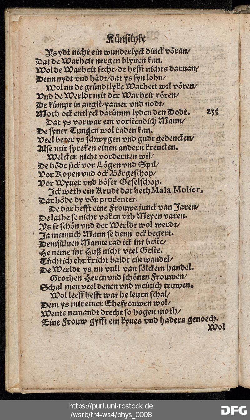 Transkription von WS₄: Schöne künstlyke Werldtspröke (VD16 S 3389)