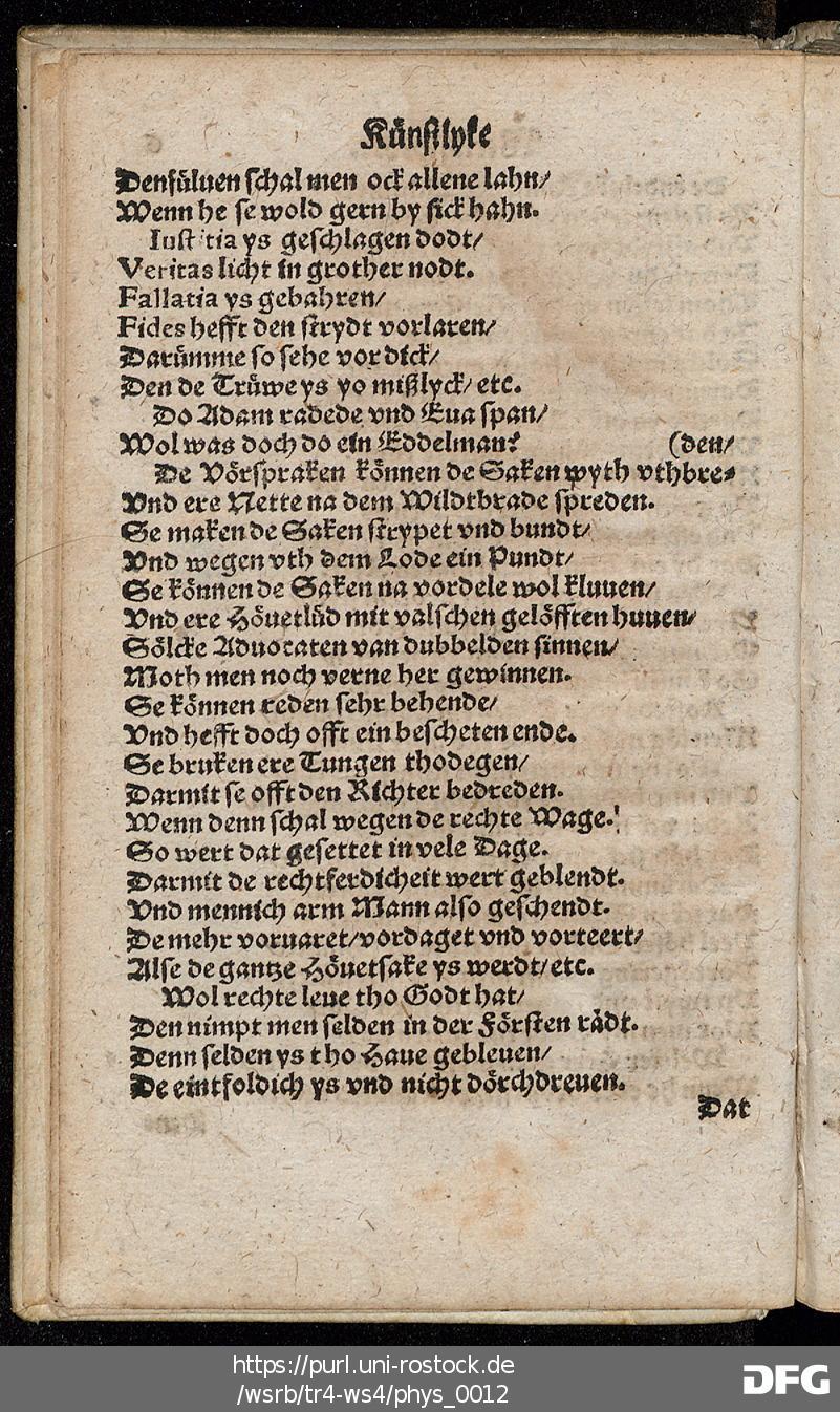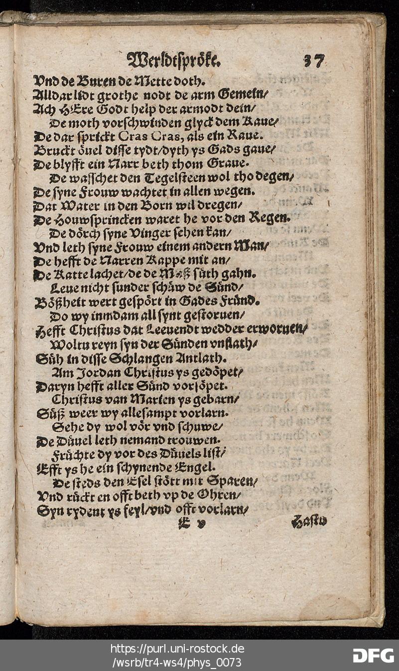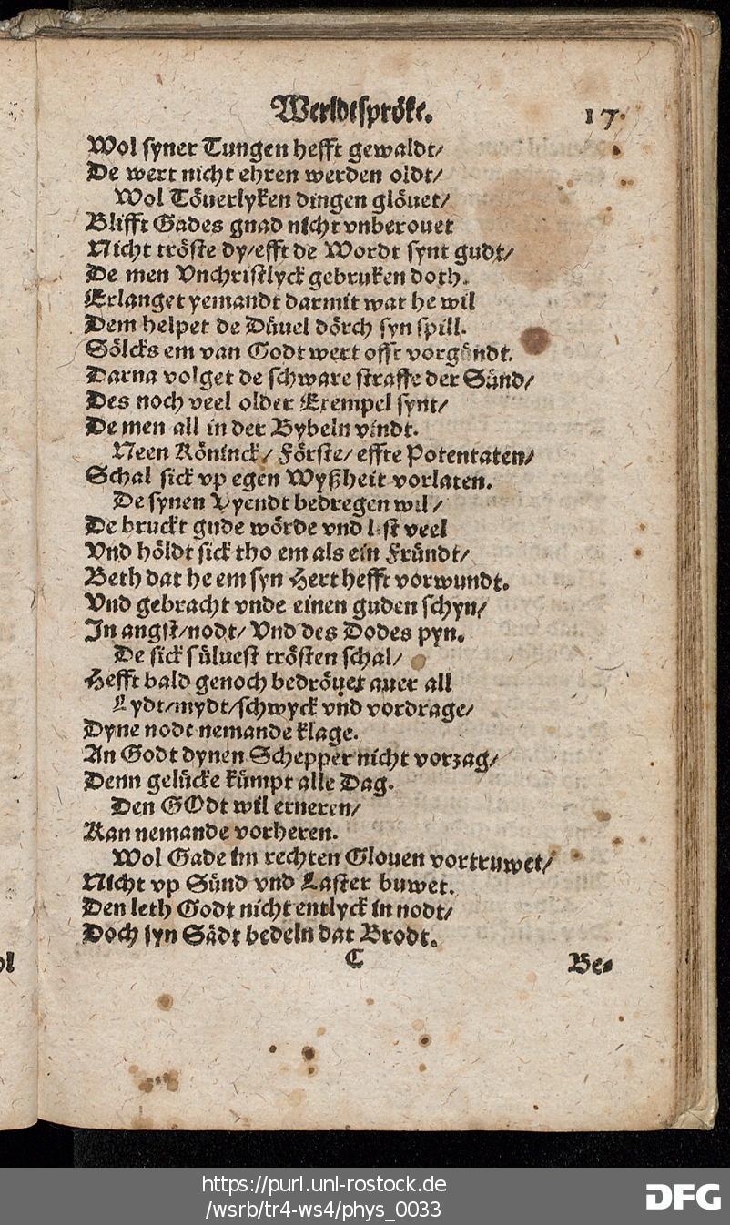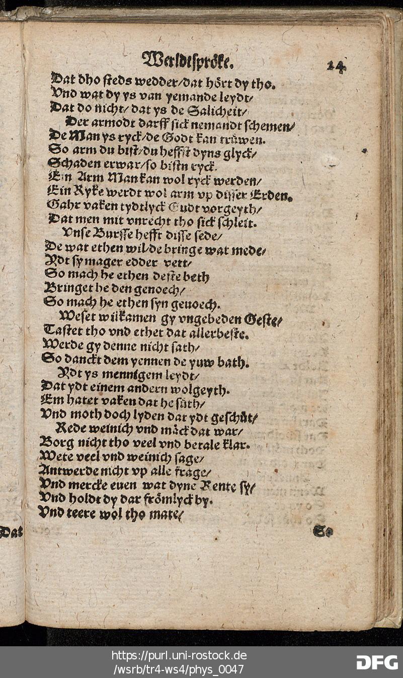 Transkription von WS₄: Schöne künstlyke Werldtspröke (VD16 S 3389)